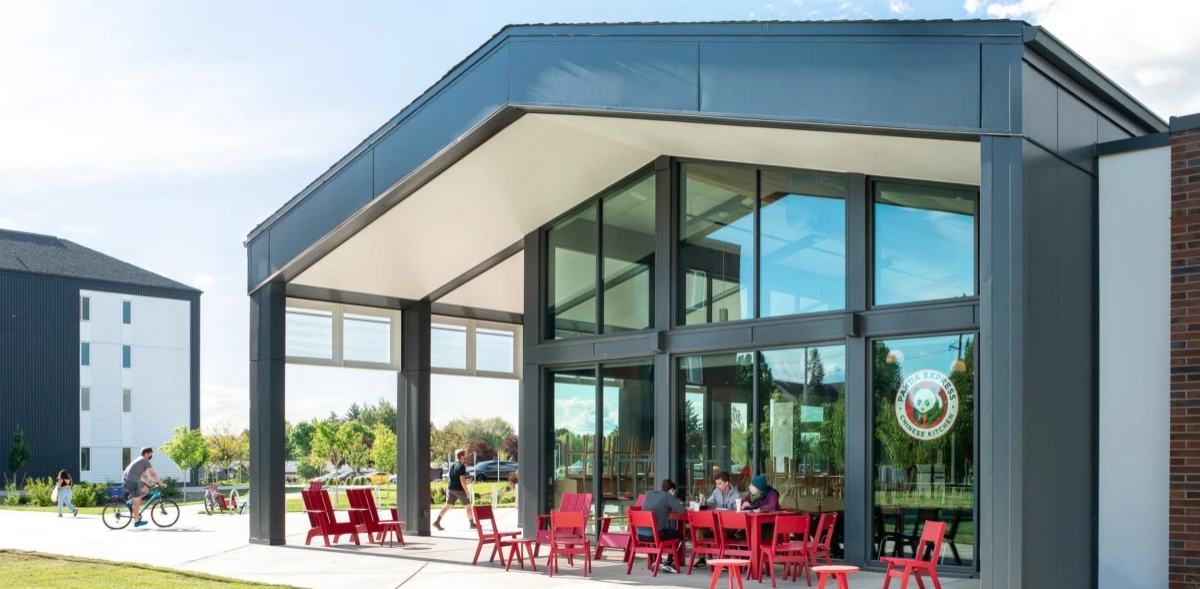 The approach of the housing unit layout and building footprint is to encourage development of a small-scale residential community with communal bathrooms, study rooms, and lounges on each floor to help promote social interaction and a sense of community. Together with essential student services functions, site amenities will include parking, covered bike storage, landscaping, and outdoor gathering and recreational spaces, which may include concepts such as courtyard, outdoor seating, community BBQ, and other similar ideas. Adjacent to the Residence Hall will be a two branded concept dining facility with kitchen, restrooms and seating, plus a connection to a separate conference center similar to CWU’s Wellington Event Center.