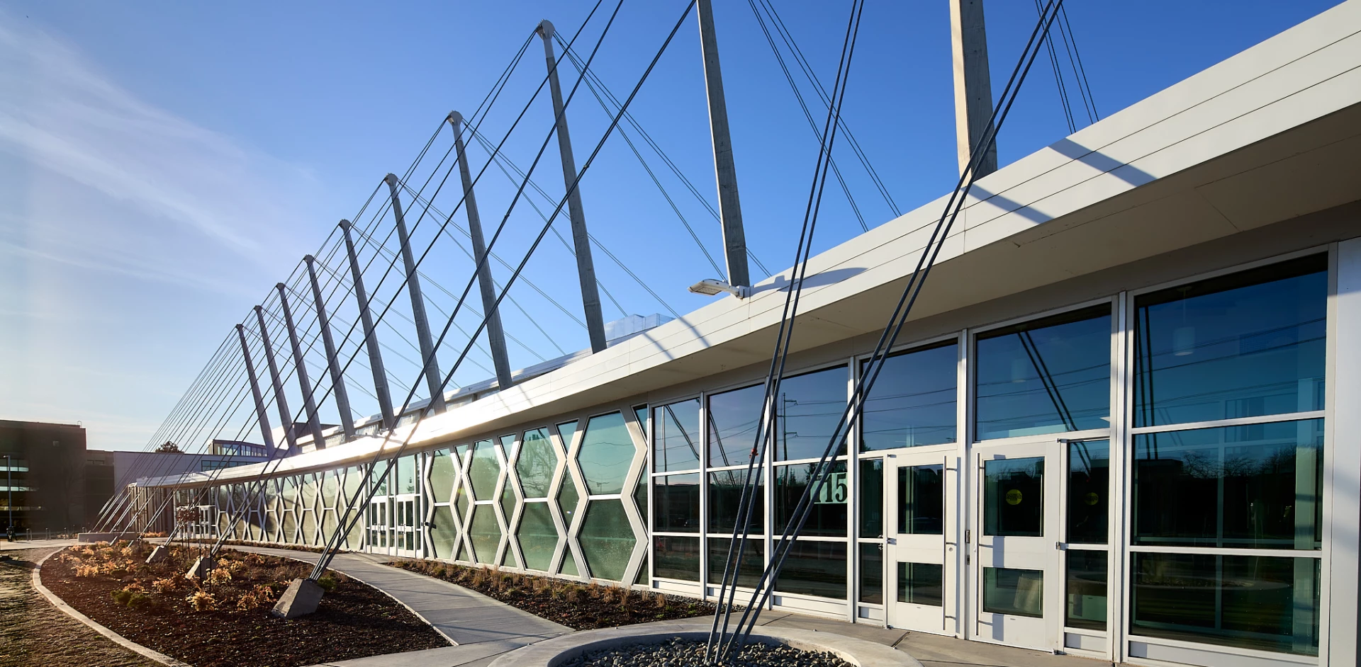 Renovations enhanced the capabilities of this multi-faceted building, from physical education, physical activities, sports management, and dance. Updates were also made to the performance gym/convocation center, locker-rooms, along with Nicholson Pavilion classrooms, offices, and meeting spaces. Additionally, we replaced the cathodic protection system for the roof’s signature cable structure.