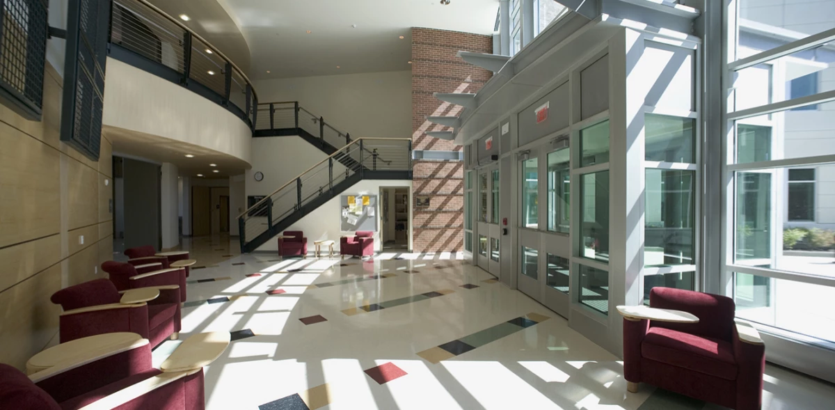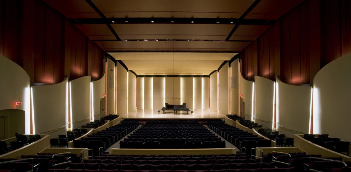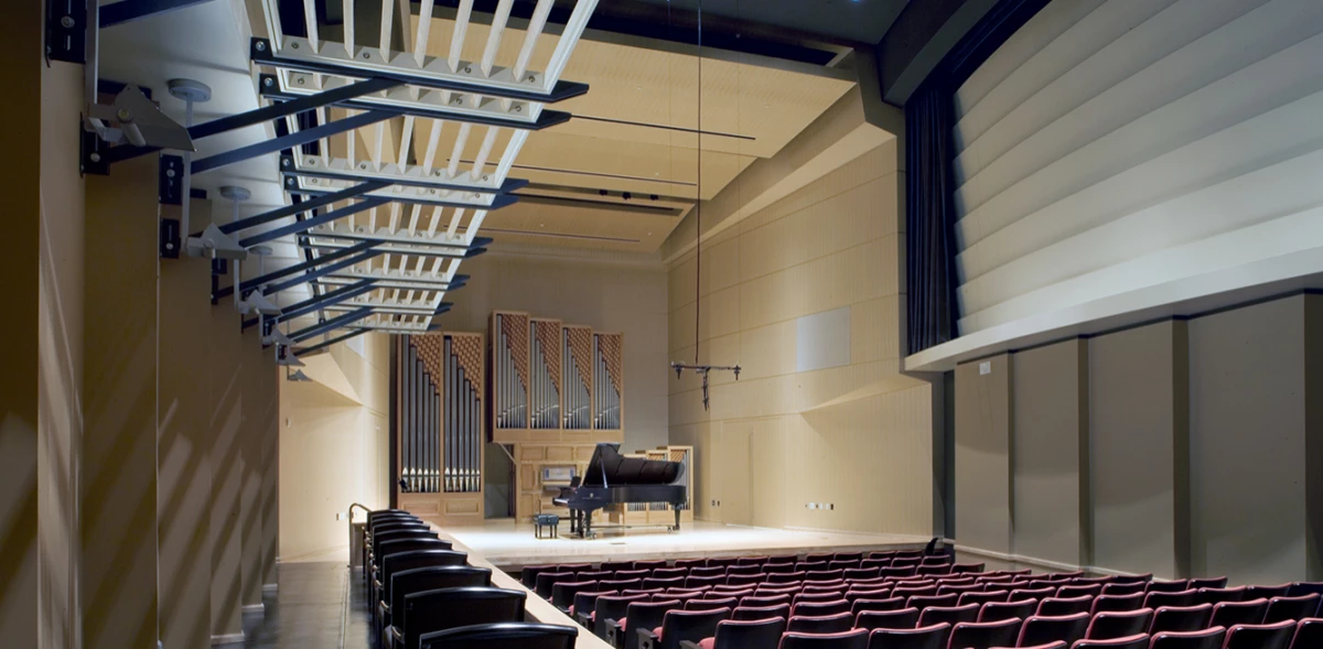 It includes two main auditoriums; a Concert Hall and a Recital Hall. Virtually every room in the building is fitted with acoustic panels, carpet, tile and wood flooring. One of the major challenges was starting the project in October, which posed significant winter weather challenges.