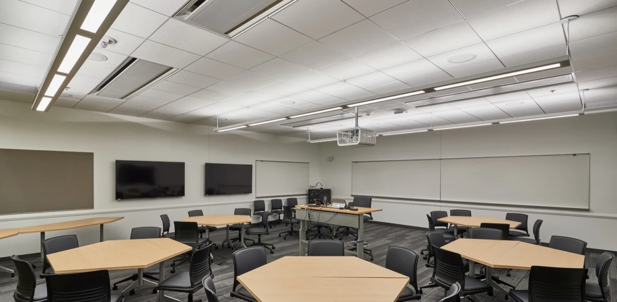 The existing 49,250 square foot north wing underwent a major renovation and the 57,750 square foot south wing was demolished and replaced with new construction. Samuelson houses the Departments of Computer Science, Information Technology and Administrative Management, Mathematics, and Sociology.