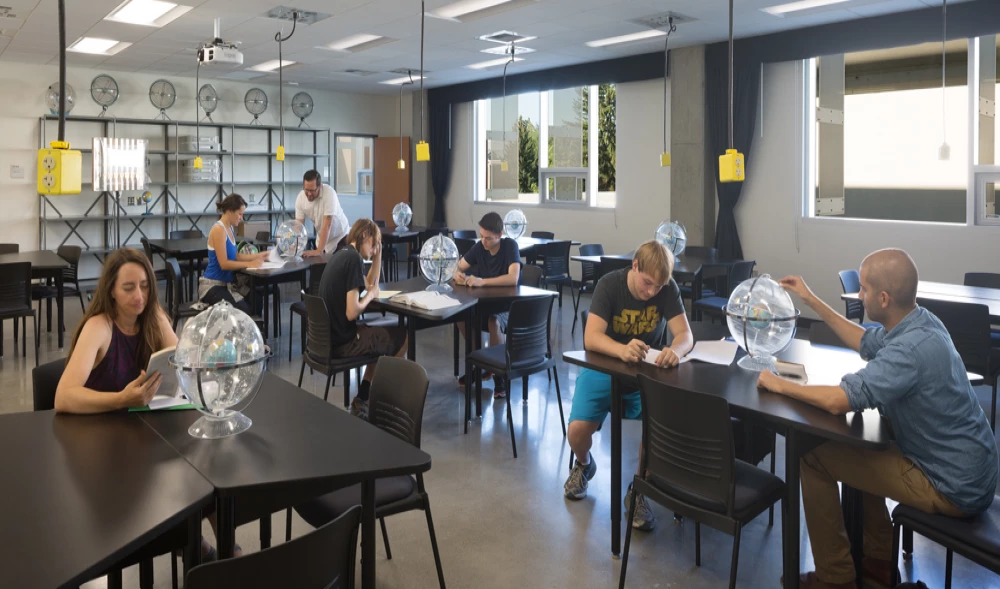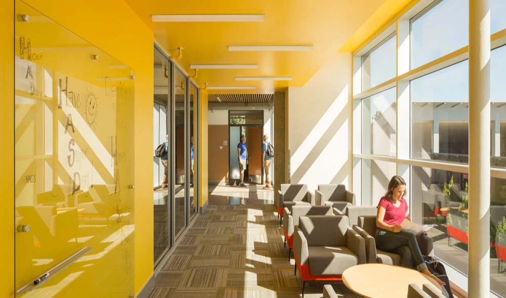 This multi-discipline science building includes innovative classrooms, labs, research labs, offices, and outdoor learning areas.