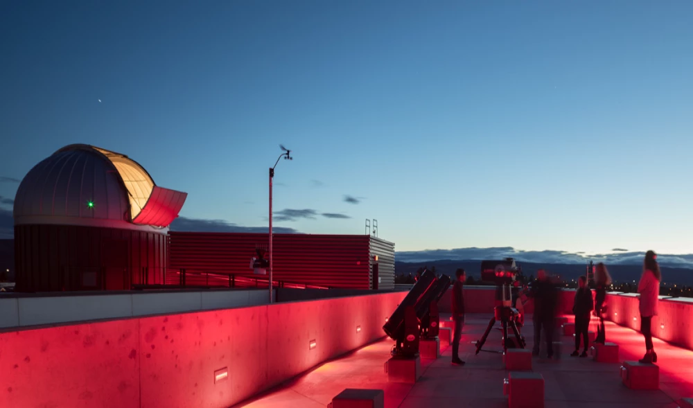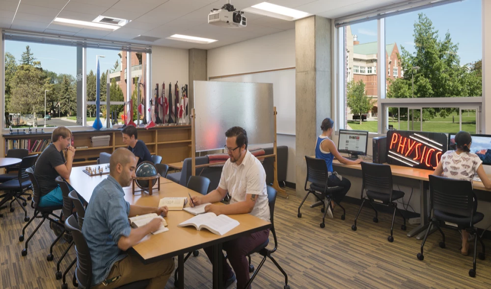 Lab areas host sample prep, carbon labs, laser research and optics research labs, and a planetarium. Shared student collaborative spaces allow faculty and students from different science disciplines to collaborate and share knowledge. The design features the building as a “living learning tool” for students and includes interactive opportunities with technology as well as showcasing unique characteristics of their programs. The building also features many sustainable design elements and is designed to be LEED Gold.