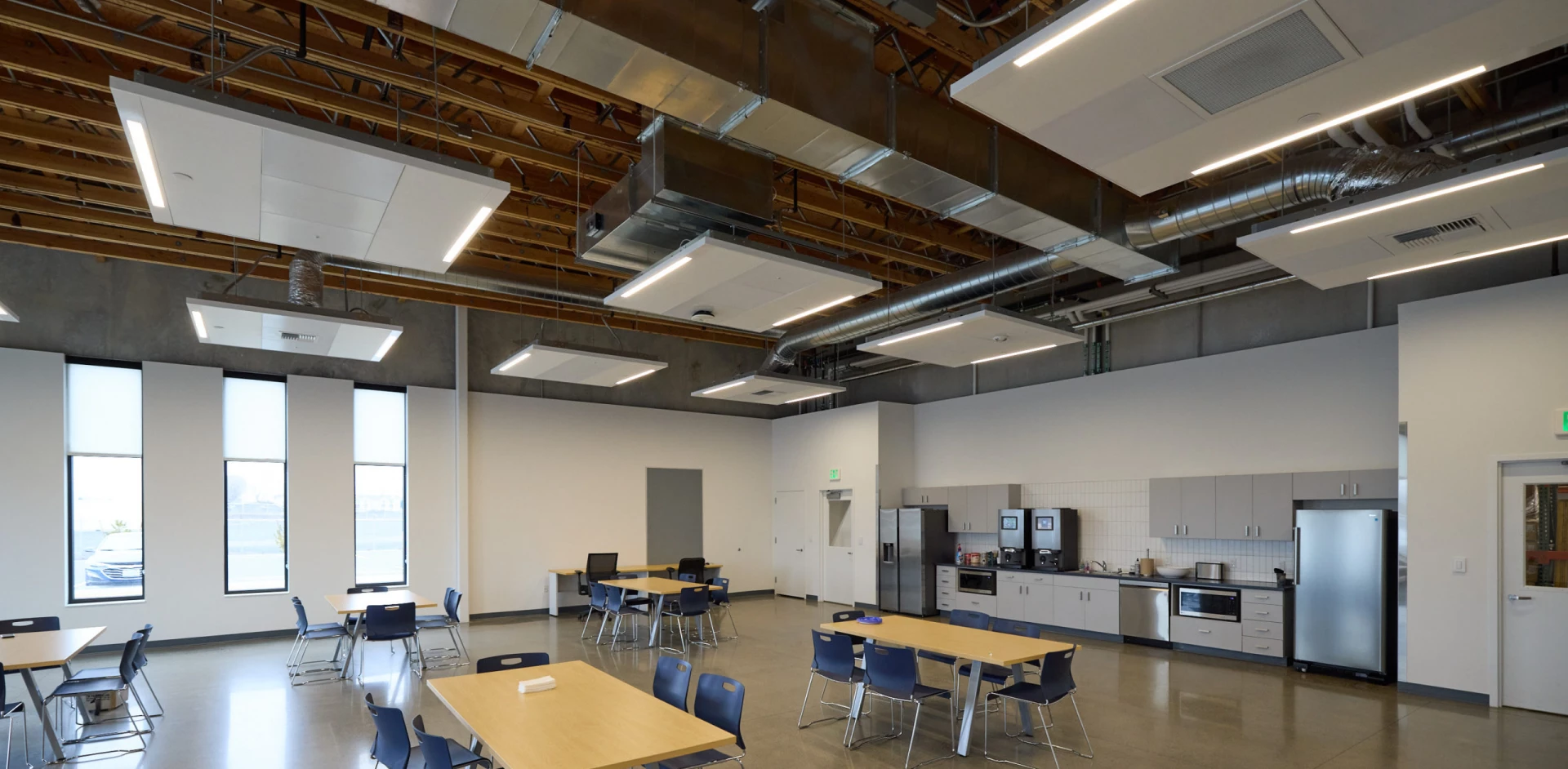 The warehouse is utilized to produce prefabricated sheet metal, piping, plumbing materials and systems. Designed with safety and multi-trade needs in mind, the facility houses ample, flexible space for multi-trade assemblies, an extended staging area, and a better workflow layout to improve safety and productivity. A fiber laser for galvanized materials was included to improve production along with a mist system to keep clean-up to a minimum for pipe-cutting needs. Additionally, the facility is designed around McKinstry’s Zero-Carbon Future goal, operating as an all-electric facility with EV infrastructure for future electric fleet vehicles.