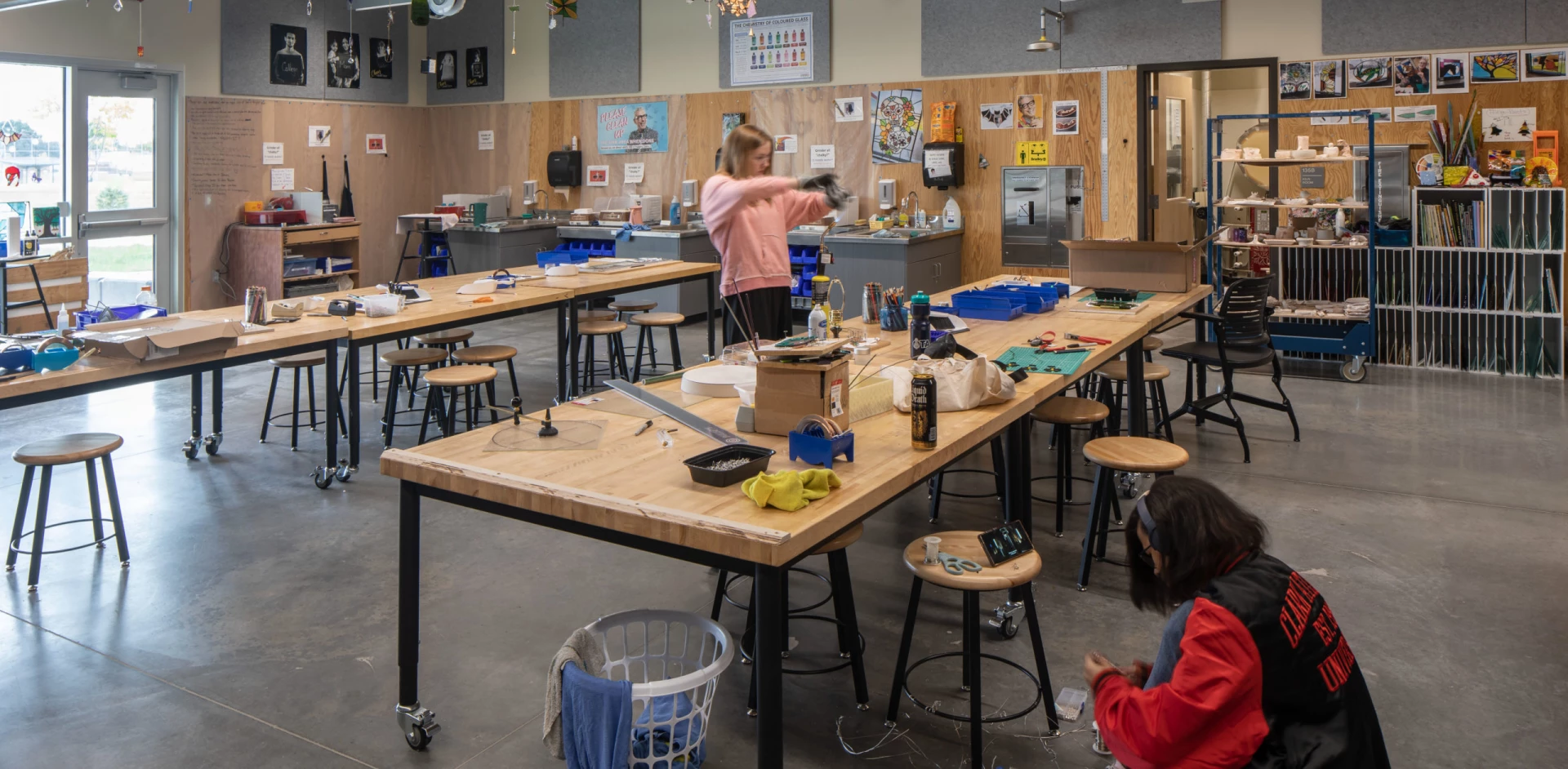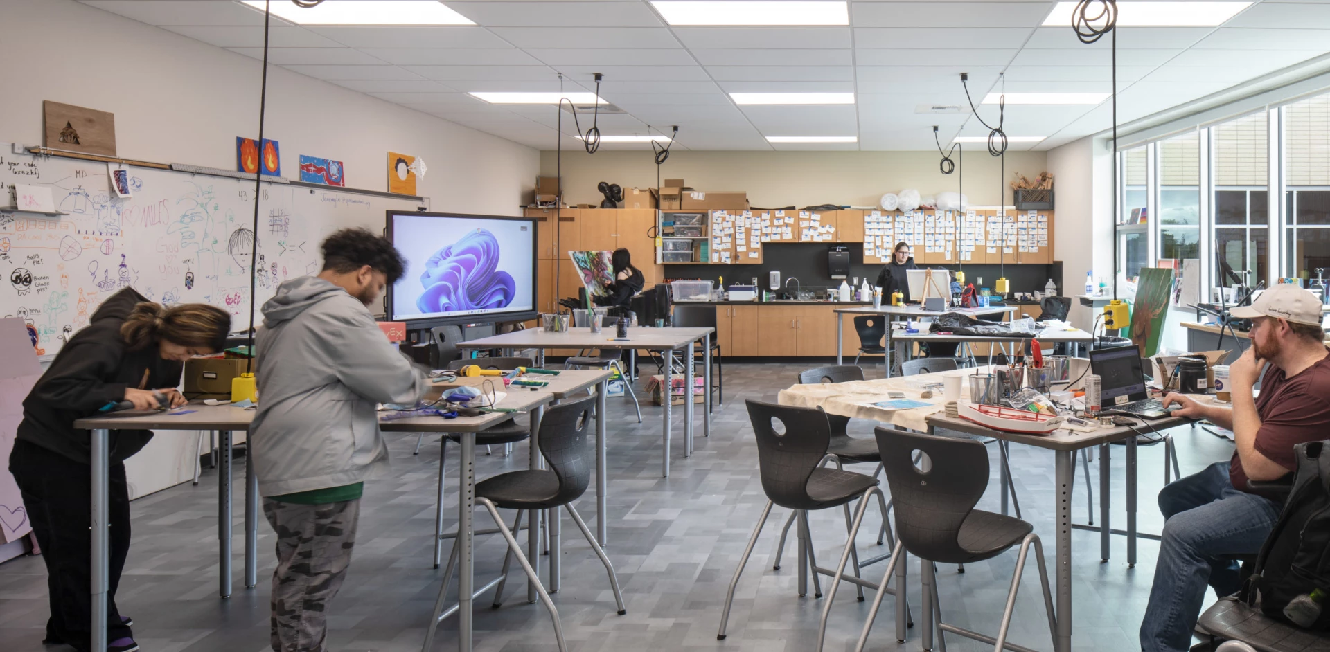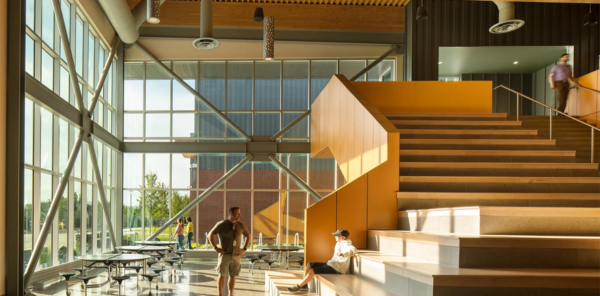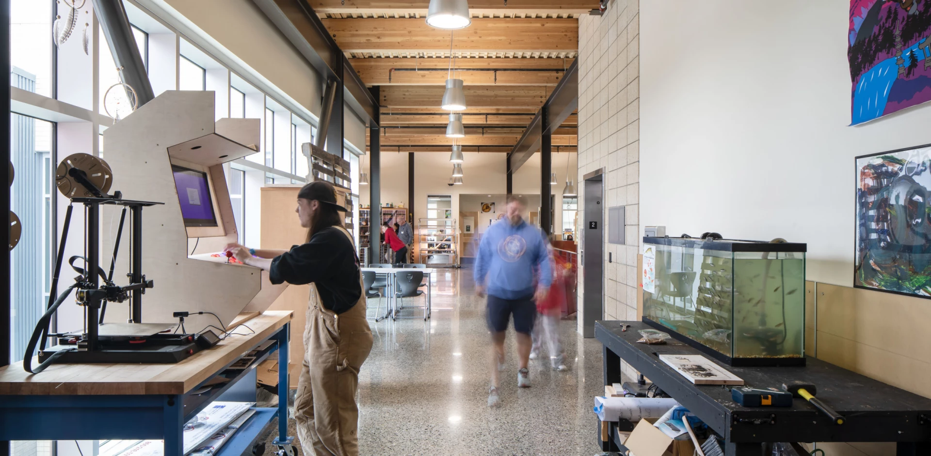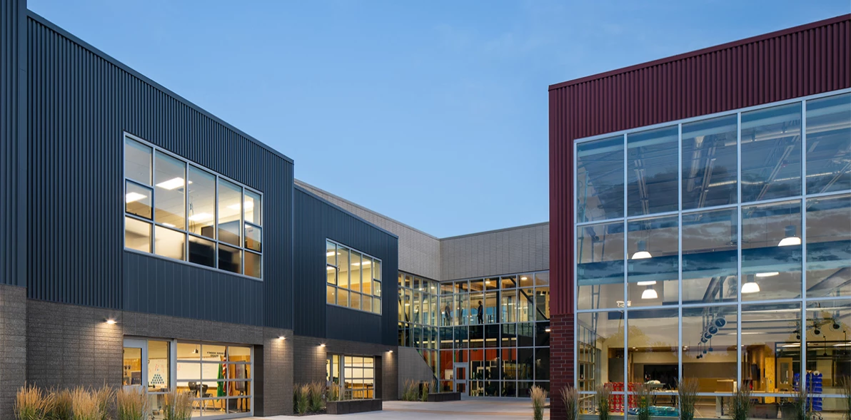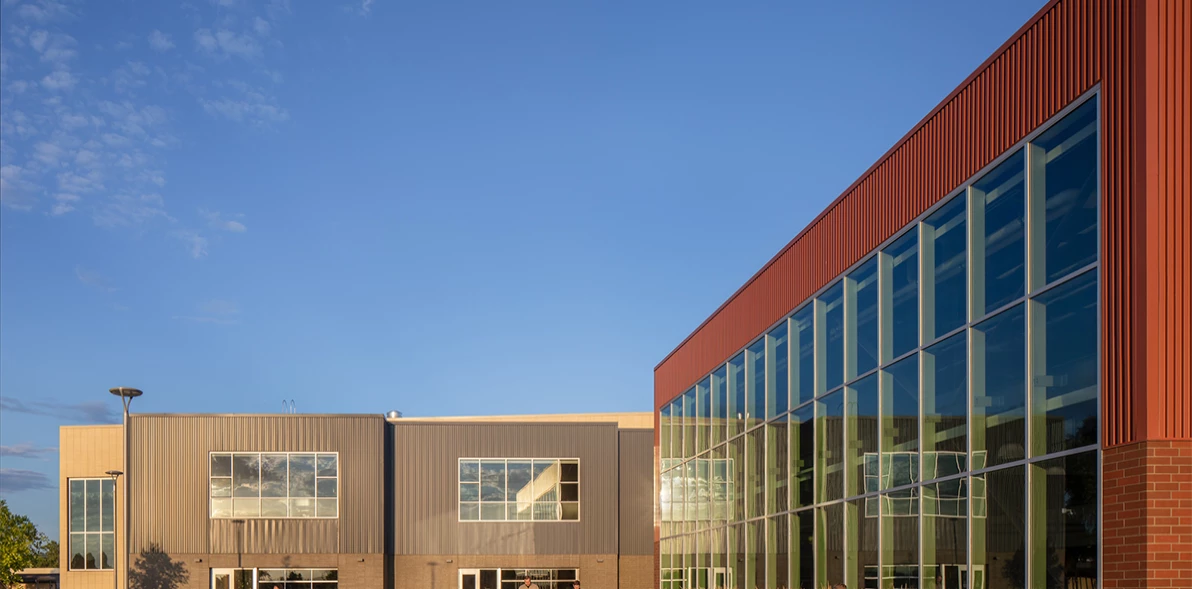 The project also includes the Cook Street enhancement, which provides connectivity and traffic calming for the school, library, STA and community center directly across the street. It also provided a tie-in to the Children of the Sun Trail and includes concrete plazas, playground equipment and landscaping enhancements to provide an open campus from the community center all the way through to the NewTech Skills Center. The Shaw Middle School portion is a 155,000 SF building with 41 classrooms, kitchen, administration offices, gymnasium and the Hillyard branch of the Spokane Public Library. The On Track Academy is a 51,000 SF building with 13 classrooms and shop spaces, creative suites for arts and earth science, STEM labs, a commons, administration offices and a community outreach center.