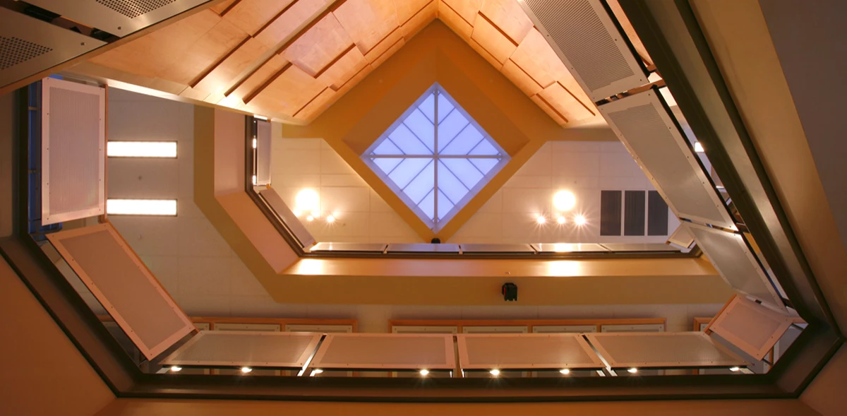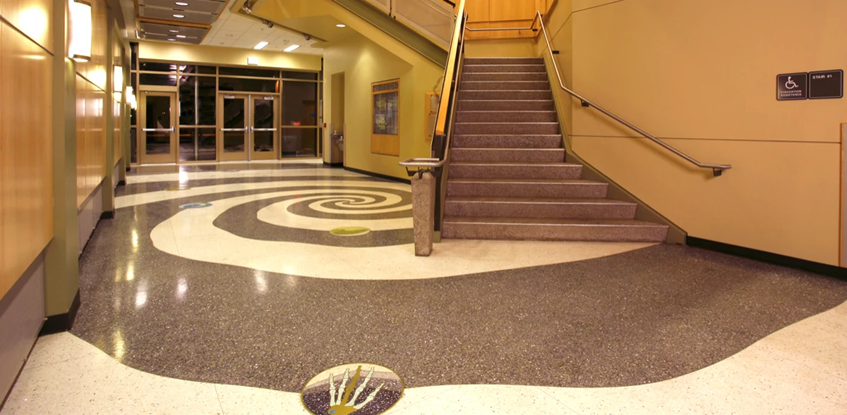Instructors and staff will employ the 38 office spaces. The lobby features Spirals and Helixes: The Curves of Life, by artists from the Washington State Arts Commission’s Art in Public Places. Other features include suspended digital hallway clocks, red-light/green-light signaling system indicating when it’s appropriate to open windows given weather conditions, and motion-sensitive sensors for lighting.